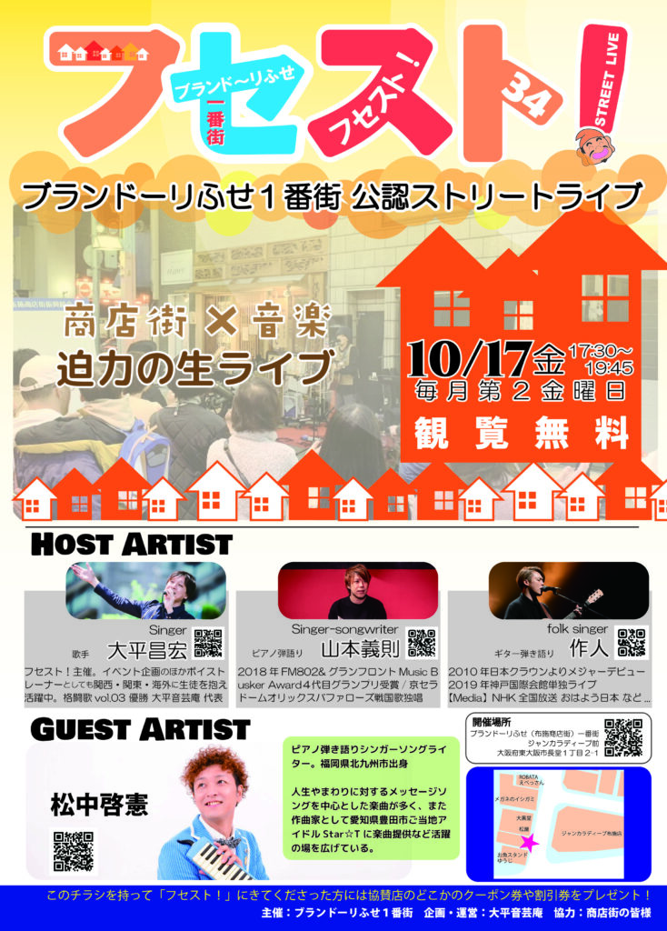 近鉄布施駅北側商店街「ブランドーリふせ1番街」公認のストリートライブ。
